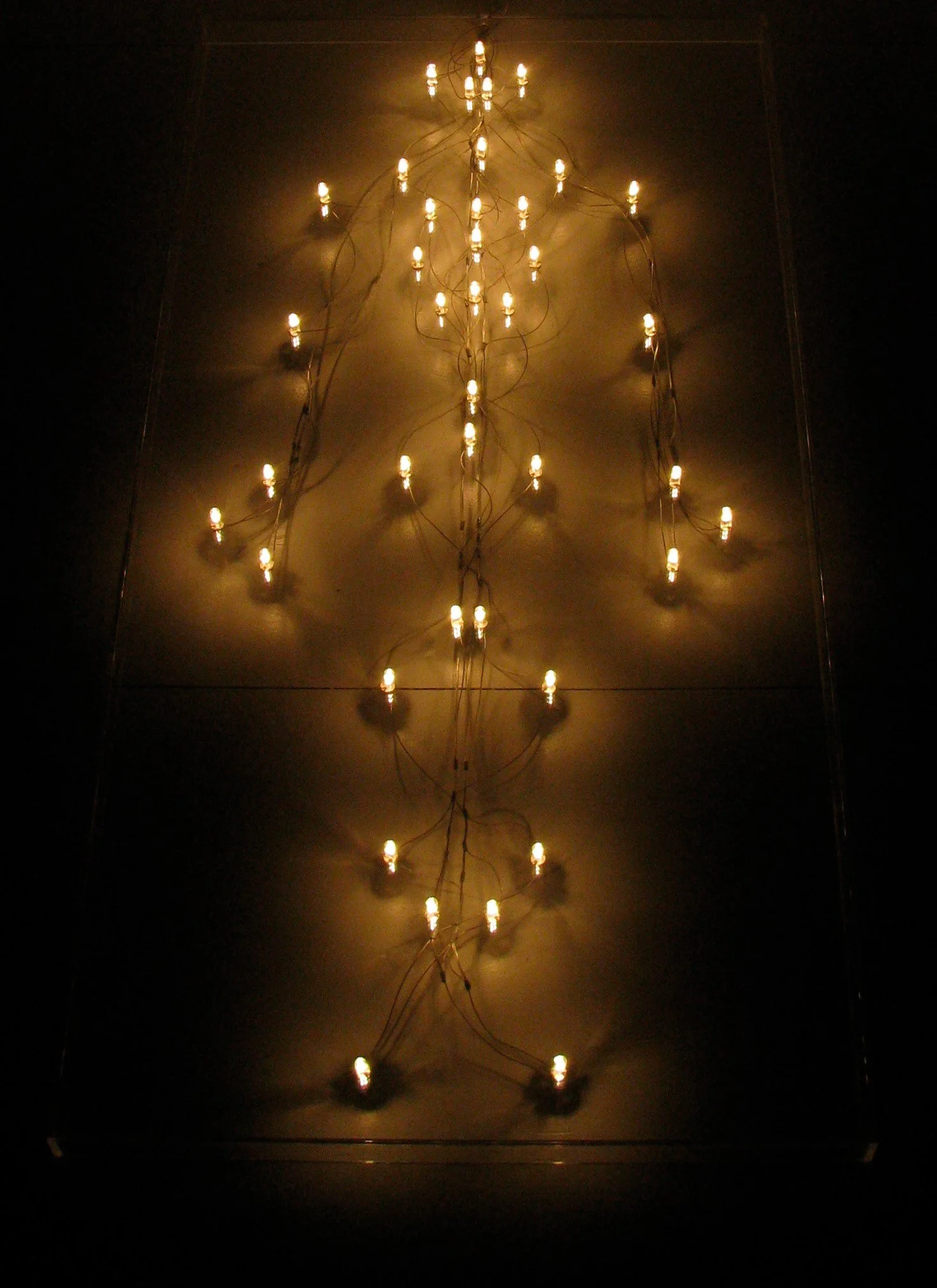 Clear Light is a kinetic light sculpture that attempts to portray the clear light, referenced in Buddhism as the moment in which opposing forces unite preceding the highest supposed state of consciousness, often at death. Using a motion sensor, the sculpture detects the presence of somebody in the room and begins it’s cycle of illumination and gradual disappearance through the use of microcontrollers, governing a series of lights fixed within the shape of my own life-sized form. As each new person enters the room the sculpture will repeatedly cycle through its process of temporary death.