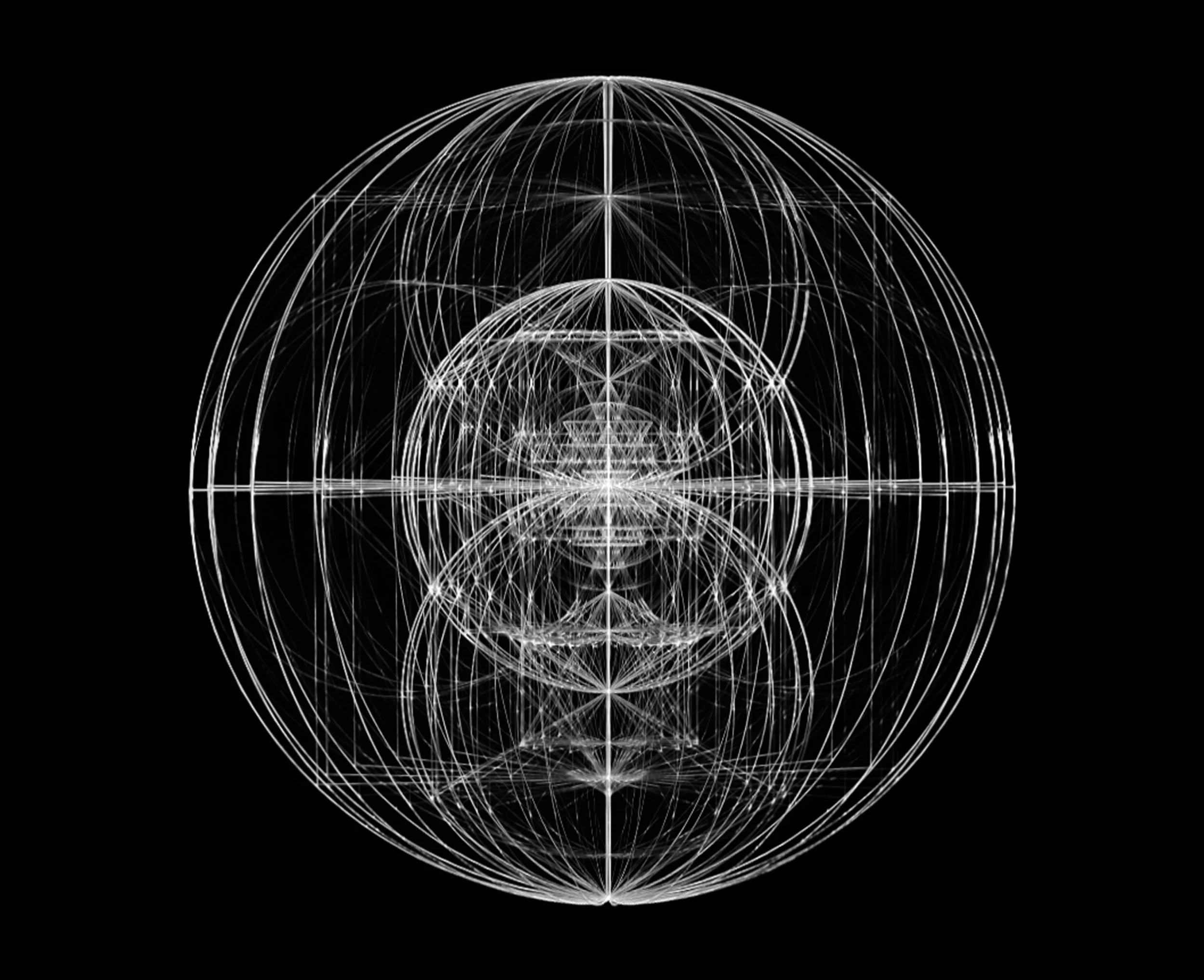 Seven Transmutations is composed of a symbolic set of pencil line drawings that I have created into an animation adding one new line per second. Starting from an invisible point, the centre becomes the circumference expanding 6 directions in space to create a 3-dimmensional sphere. The sphere divides within itself creating an array of geometric forms arising from the circle and returning to it. The drawings attempt to define the process of nature as a set of interrelationships unified in a whole. Referencing the fundamentals of geometry, they are formed around my own physical proportions.